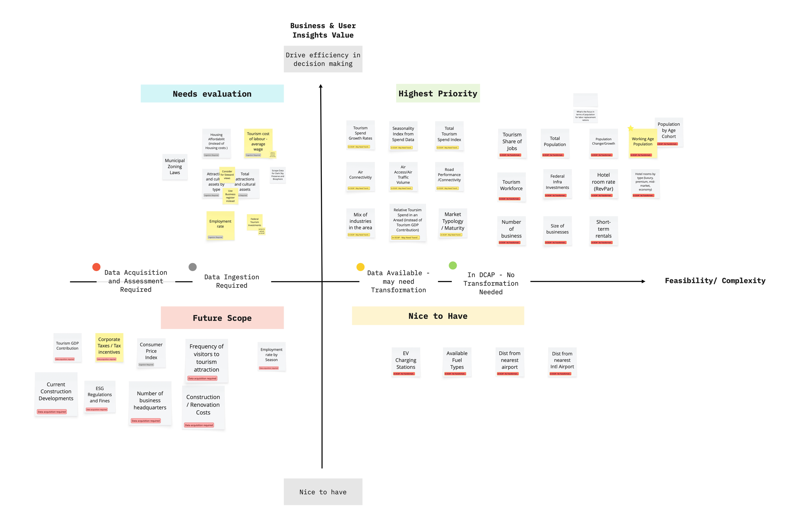 Persona-Led Feature Prioritization: To mitigate "insight overload," we shifted from "cover-all" features to a persona-led strategy (Investors and Destination Stewards). We synthesized interview insights to establish core product objectives, which directly guided the data modelling requirements.